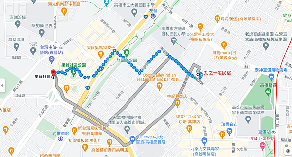 Google map 顯示從我們住的九之一宅民宿步行過去約22分鐘。