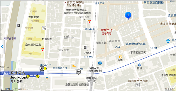 京東市場位於首爾1號線的祭基洞地鐵站(祭基洞站/Jegi-dong Station),交通非常方便~